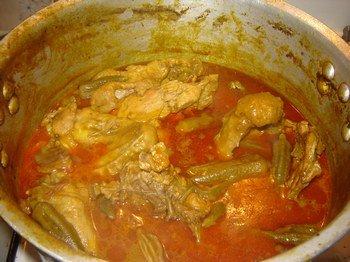 秋葵醬(Sauce Gombo),這可能是當(dāng)?shù)刈钍⑿械尼u汁了。下圖是這是在我一個同事家拍的,他把肉和魚都混到一起了,實(shí)在是有點(diǎn)不堪。