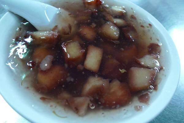 桂花糖芋苗是南京一道出名的甜點,和"桂花蜜汁藕、梅花糕、赤豆酒釀小圓子”一同被譽為金陵南京四大最有人情味街頭小食。光潔的芋苗口感潤滑爽口、香甜酥軟,湯汁呈醬紅色鮮亮誘人,散發(fā)著濃郁的桂花香,吃后唇齒留香。