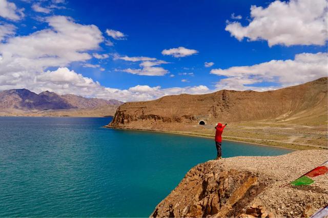 3.羊卓雍措,西藏三大圣湖之一,我們是夏季到達此處呈現(xiàn)出來的顏色是翡翠綠,它的湖面會因太陽光線的變化而產(chǎn)生不同的顏色,而一朋友10月份前往則呈現(xiàn)出了深藍色。