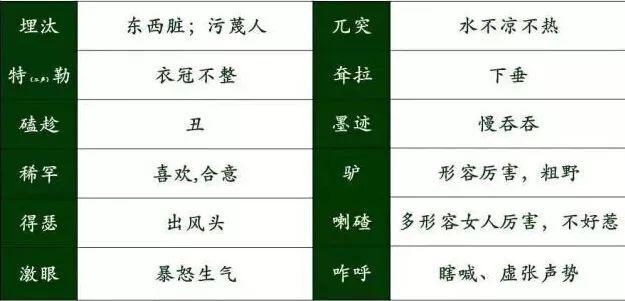 接下來(lái)是形容詞!在我們這旮沓,臟叫埋汰,丑叫磕磣,喜歡叫稀罕,生氣叫激眼,磨蹭叫墨跡!