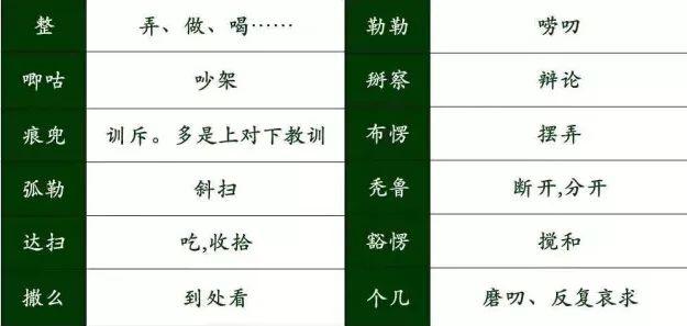 學(xué)完了名詞,我們來(lái)看看動(dòng)詞!會(huì)了明=名詞和動(dòng)詞,我們就可以簡(jiǎn)單造句了!可以說(shuō)有些動(dòng)詞的標(biāo)準(zhǔn)讀法只有沈陽(yáng)人知道!例如這個(gè)“勒勒”應(yīng)該讀作“勒(lé)勒(le)”例句就是:你老閑勒勒啥??!