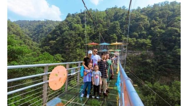 高達(dá)300米的玻璃橋上,從玻璃橋上向下俯瞰,樹木叢林,江水瀑布,躍然眼前,全透明的玻璃設(shè)計(jì),感受人在云端走,景在腳底游。