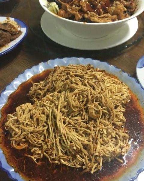 麻辣牛肉干豆腐絲,他家干豆腐絲是一絕,極其便宜另說(shuō),你看著油大其實(shí)吃起來(lái)一點(diǎn)也不膩,干豆腐用水焯過(guò),所以吃起來(lái)也不會(huì)干,特別嫩水煮肉片,其實(shí)水煮肉片這道菜在東北跟四川差很多,不過(guò)他家別的不說(shuō),鮮香麻辣是基本保證,吃完肉片,撈出來(lái)大頭菜就著米飯,得勁兒!只要菜一上齊,一桌迅速安靜,別管你剛接幾個(gè)億大單子或者你媳婦生孩子,孩子不像你,啥事等吃完再說(shuō),沒(méi)閑功夫勒你,一碗大米飯上來(lái),就開(kāi)造,啥時(shí)候你覺(jué)得該松一下褲腰帶了,那這頓飯算吃完拉倒,對(duì)了,他家菜量特別實(shí)惠。
