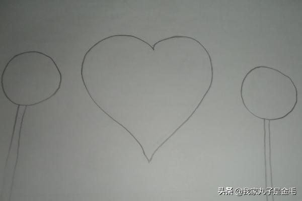 4、再在心形下面畫出兩個(gè)小點(diǎn)的圓。