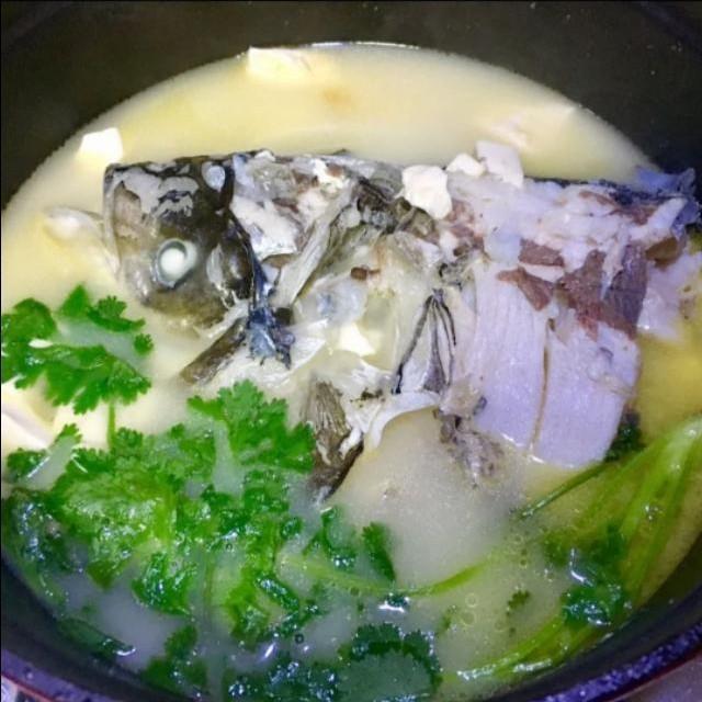 步驟五,魚湯變白時(shí),出鍋時(shí)撒上香菜。