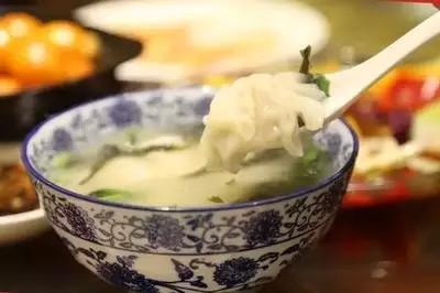 丸子軟Q彈牙,羊湯香醇濃郁,一把鮮韭菜如一縷清風(fēng)打開你朦朧的味蕾,羊湯不夠隨便續(xù),丸子酥肉可兩摻。把餅絲泡進(jìn)湯里,很容易就吸飽了湯汁,吃在嘴里有點(diǎn)糯糯的口感。