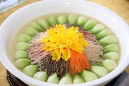 蕭記燴面的湯汁不像滿大街的燴面湯漂著濃濃的肥油,它鮮且清亮。面條輕薄、筋道、爽滑,嚼頭十足。挑起面條,里面有海參、魷魚、猴頭、黃花菜、黑木耳、豆皮絲、粉條,配料十分豐富。