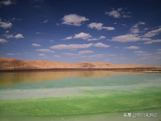 本人正在旅途中,8月27日坐大巴由成都出發(fā),前往新疆南疆進(jìn)行為期30天的旅游。在青海格爾木至茫崖途中,所看到的翡翠湖,應(yīng)該是我所見過的湖泊中最美,最迷人的。